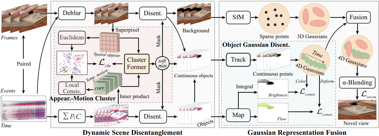 STD-GS: Exploring Frame-Event Interaction for SpatioTemporal-Disentangled Gaussian Splatting to Reconstruct High-Dynamic Scene.